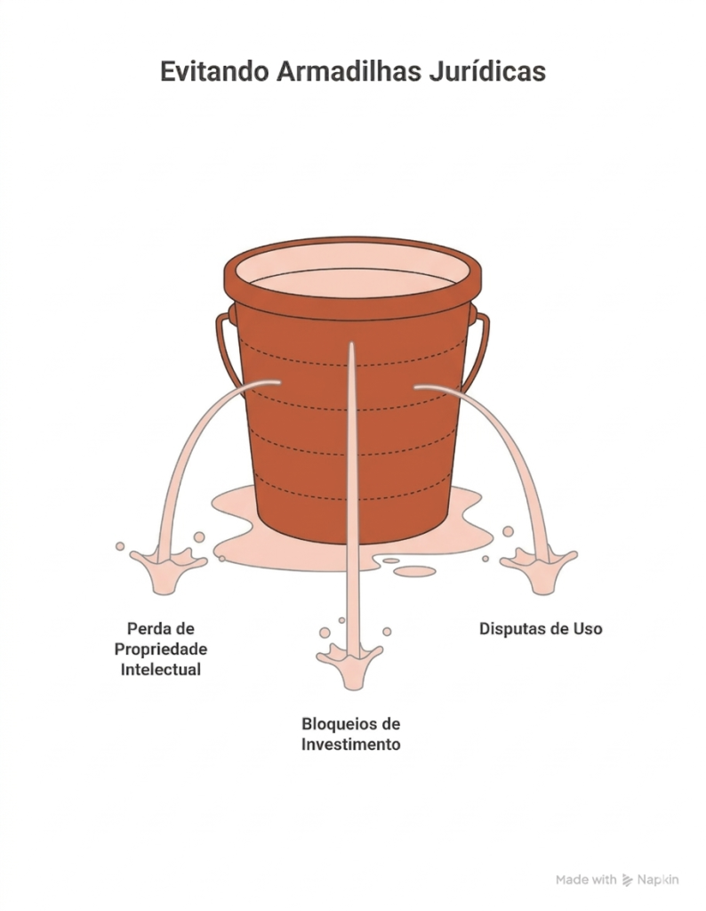 Uma cláusula ambígua que um tribunal interprete como cessão pode representar a perda do ativo mais valioso da sua empresa. Isso acontece com mais frequência do que se imagina em contratos de desenvolvimento por encomenda mal redigidos.